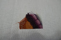 We were away last weekend so I didn't get around to posting, but it means that I'm now posting my first page finish of the year, although it may be the least exciting page finish that the work has ever seen. There were about 20 stitches in the top left hand corner of colour, everything else is navy! Be still my beating heart!